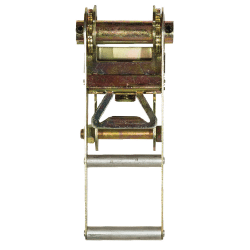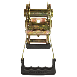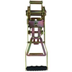 Reverse action commercial truck ratchet with slow release and locking mechanism. Elongated black wrapping handle for quick easy release. With a guiding spindle to prevent twisting in the webbing. The pull tensioning system requires half the effort of a traditional push system.