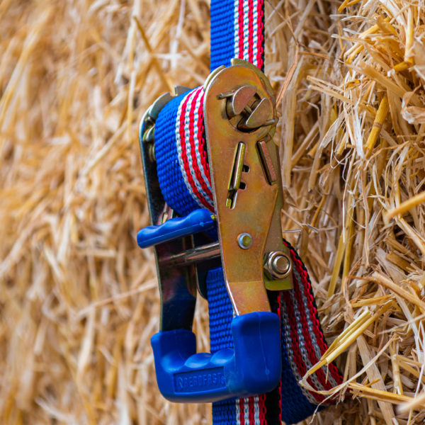 Heavy Duty ratchet tiedown for securing loads on trailers, utes and light trucks. Premium wide handled ratchet for ease of use. Heavy Duty NZ Made 50mm webbing. Wide opening Double J-Hooks to suit 20mm bar.