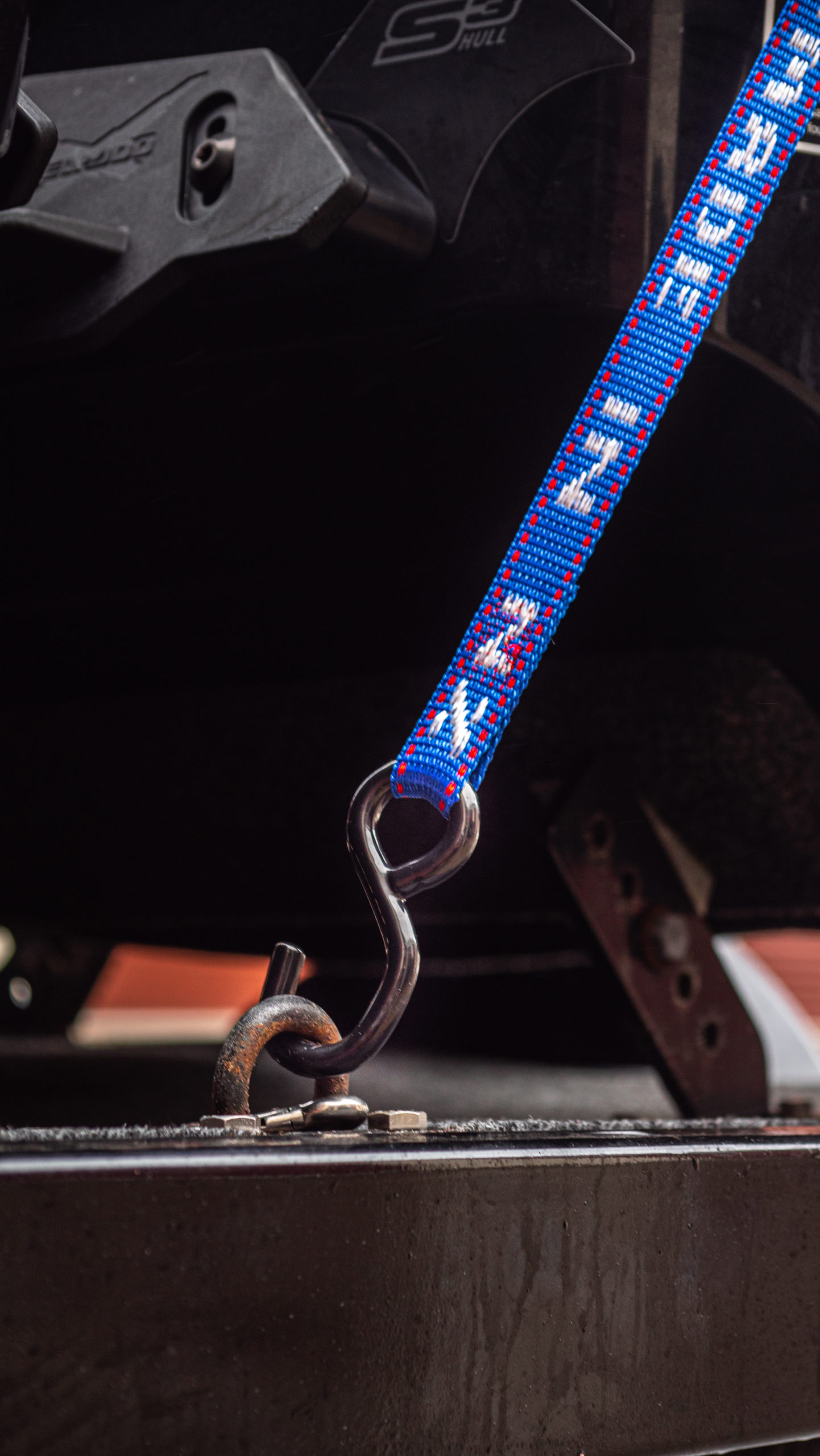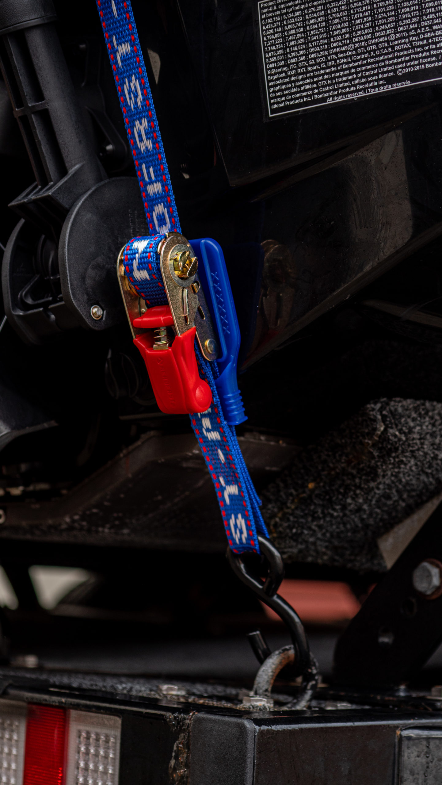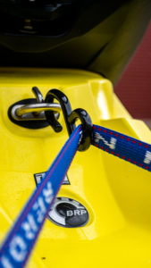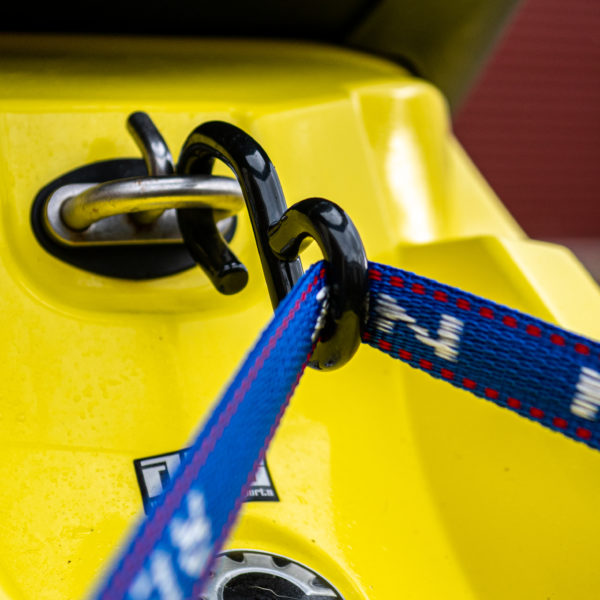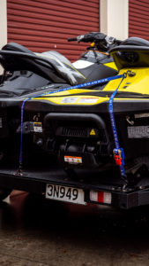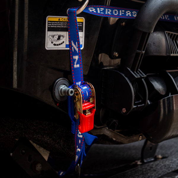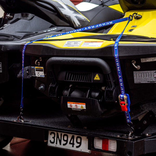 For securing Jet Skis to trailers. Premium rubber handled ratchet. PVC Coated S-hooks to prevent damage to trailer and Jet Ski. Floating 3rd S-hook for attaching to Jet Ski tow hook.