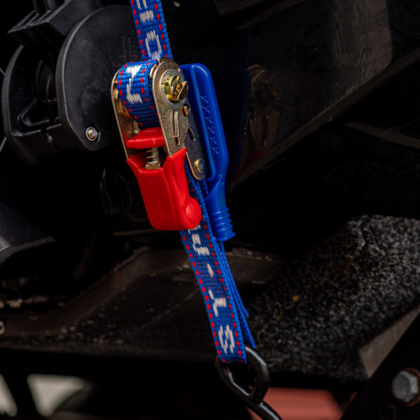 Overcentre / Gunwale tiedown for securing medium sized boats to trailers. Easy to use stainless steel (304) ratchet for added product life. 25mm Heavy Duty UV-Treated Polypropylene webbing for durability and added strength. Protective webbing behind ratchet to prevent damage to boat. PVC Coated S-hooks to prevent damage to body work or trailer.